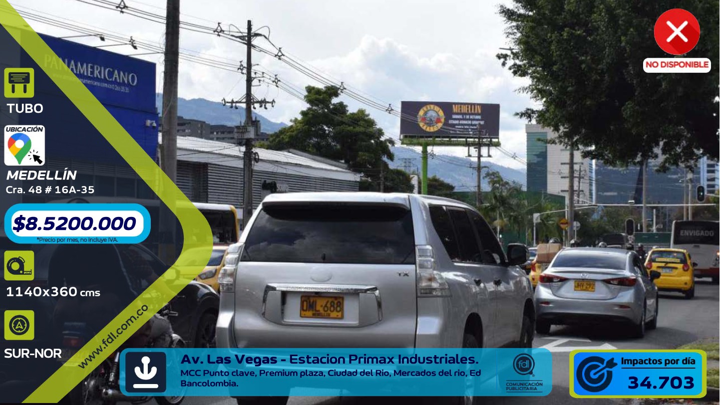 - Esta valla publicitaria en Medellín, SUR-NOR tiene dimensiones de 1140x360 cms. Está orientada a audiencia long-distance drivers & highway commuters · intereses: automotive, road trips & driving · alto tráfi.