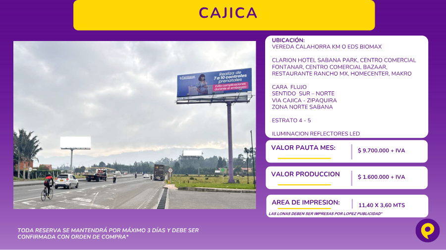 - ¿Cuánto cuesta valla publicitaria en Cajicá, Zona Norte Sabana?